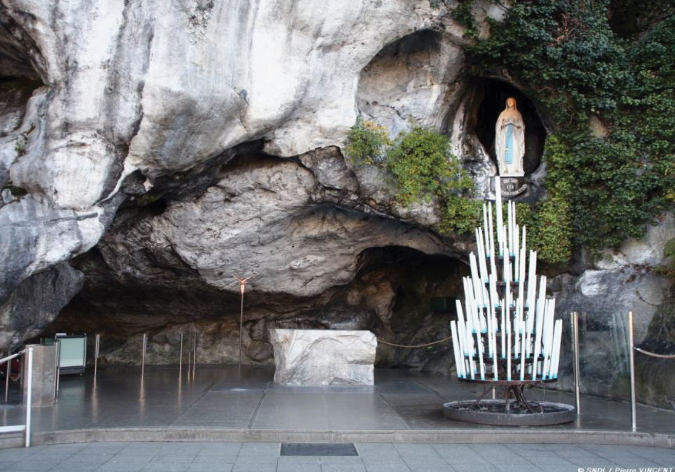 Lourdes ist eine Stadt im Südwesten Frankreichs in den Ausläufern der Pyrenäen. Sie ist auf der ganzen Welt für ihre katholischen Marienwallfahrtsstätten, den sogenannten „Heiligen Bezirk“, bekannt. Jahr für Jahr strömen Millionen Besucher zur Grotte von Massabielle, wo 1858 der Legende nach die Jungfrau Maria einem jungen Mädchen aus dem Ort erschienen sein soll. Pilger können das Wasser, das aus einer Quelle in der Grotte sprudelt, entweder trinken oder darin baden.